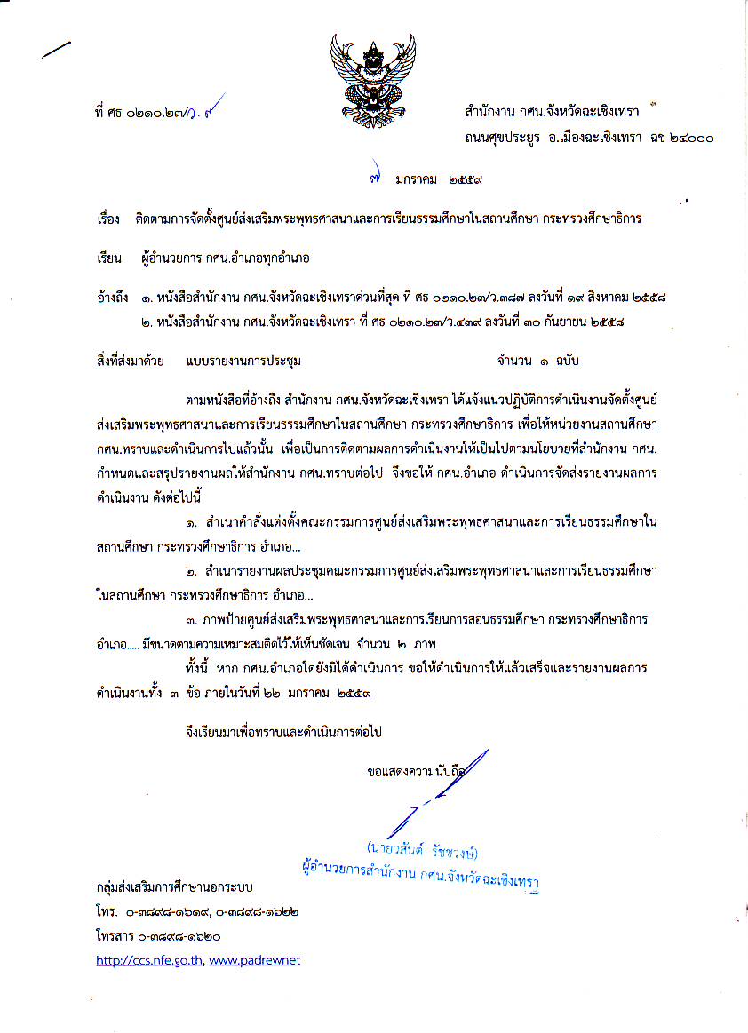 สำนักงาน กศน.จังหวัดฉะเชิงเทราขอให้ สถานศึกษาทุกแห่งดำเนินการจัดส่งรายงานผลการดำเนินงานการจัดตั้งศูนย์ส่งเสริมพระพุทธศาสนาและการเรียนธรรมศึกษาในสถานศึกษากระทรวงศึกษาธิการ ภายในวันที่ 22 มกราคม 2559 รายละเอียดดังแนบ![]() ดาวน์โหลดไฟล์ที่1 ดาวน์โหลดไฟล์ที่2 |