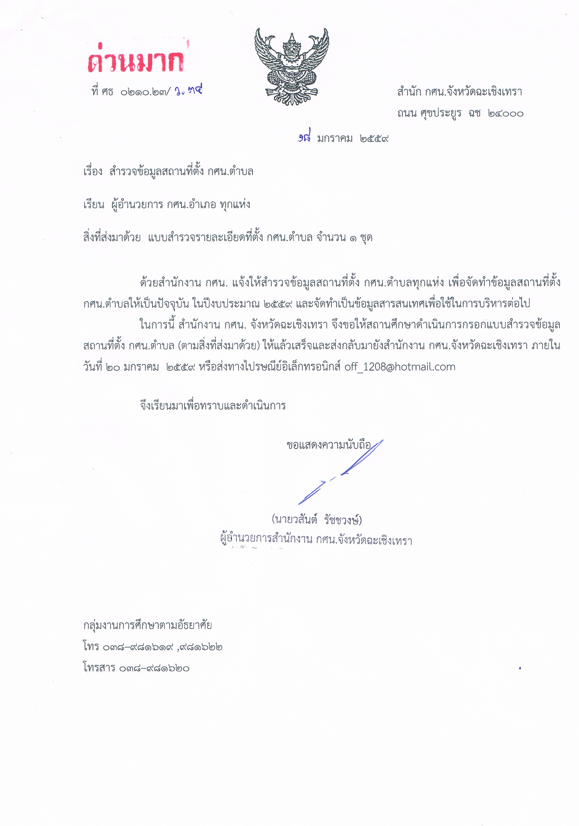 | ที่ ศธ | ด่วนมาก ที่ ศธ 0210.23/ว34 ลว.18 มกราคม 2559 |