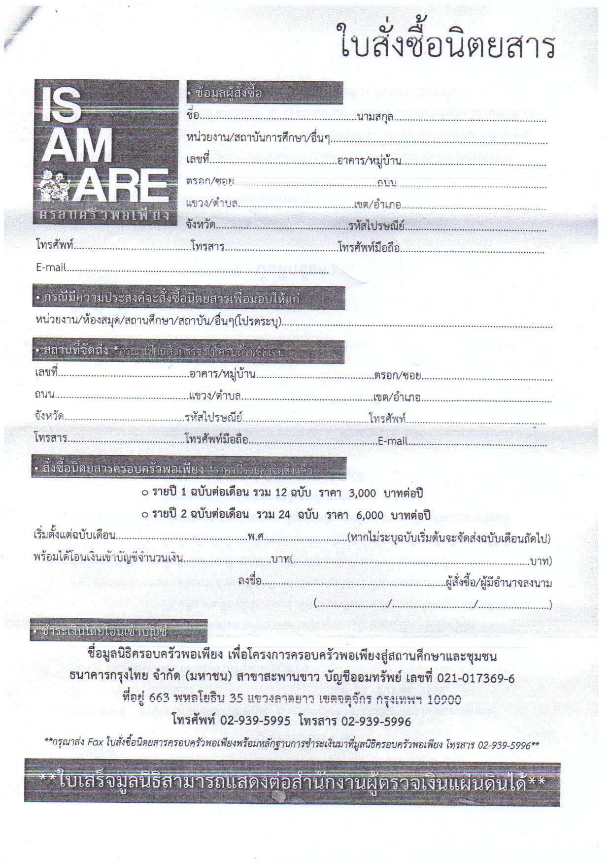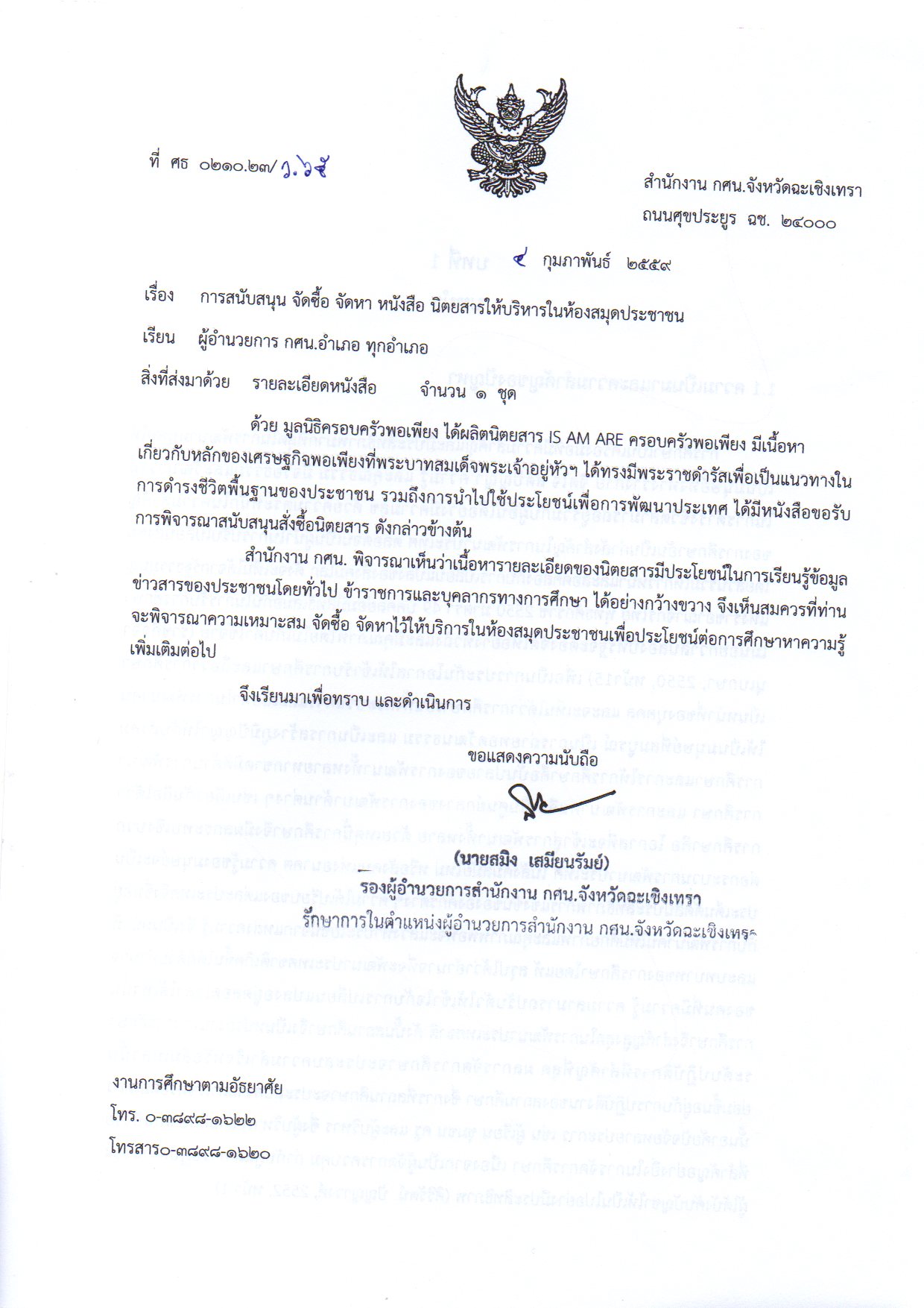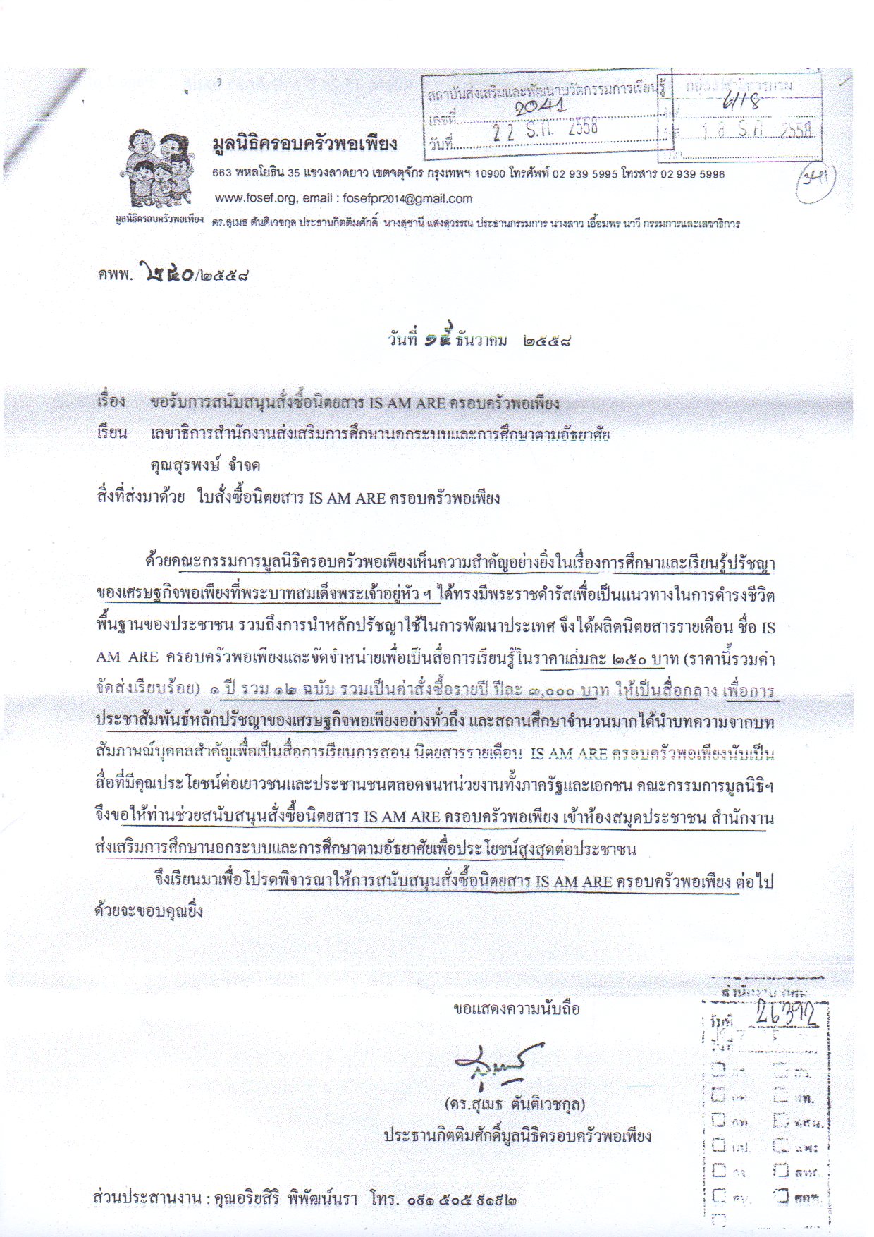 ด้วย มูลนิธิครอบครัวพอเพียง ได้ผลิตนิตยสาร IS AM ARE ครอบครัวพอเพียง มีเนื้อหา เกี่ยวกับหลักของเศรษฐกิจพอเพียงที่พระบาทสมเด็จพระเจ้าอยู่หัวฯ ได้ทรงมีพระราชดำรัสเพื่อเป็นแนวทางในการดำรงชีวิตพื้นฐานของประชาชน รวมถึงการนำไปใช้ประโยชน์เพื่อการพัฒนาประเทศ ได้มีหนังสือขอรับ การพิจารณาสนับสนุนสั่งซื้อนิตยสาร ดังกล่าวข้างต้น สำนักงาน กศน. พิจารณาเห็นว่าเนื้อหารายละเอียดของนิตยสารมีประโยชน์ในการเรียนรู้ข้อมูล ข่าวสารของประชาชนโดยทั่วไป ข้าราชการและบุคลากรทางการศึกษา ได้อย่างกว้างขวาง จึงเห็นสมควรที่ท่านจะพิจารณาความเหมาะสม จัดซื้อ จัดหาไว้ให้บริการในห้องสมุดประชาชนเพื่อประโยชน์ต่อการศึกษาหาความรู้เพิ่มเติมต่อไป ![]() ดาวน์โหลดไฟล์ที่1 ดาวน์โหลดไฟล์ที่2 ดาวน์โหลดไฟล์ที่3 |