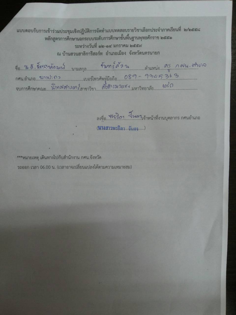 | เรื่อง | ส่งแบบตอบรับเข้าร่วมประชุมเชิงปฏิบัติการจัดทำแบบทดสอบรายวิชาเลือก |