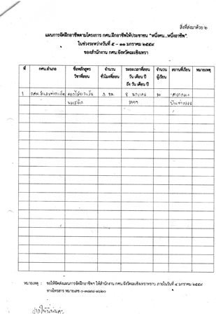| เรื่อง | แผนการจัดฝึกอาชีพตามโครงการ กศน.ฝึกอาชีพให้ประชาชน "หนึ่งคน...หนึ่งอาชีพ" ระหว่างวันที่ 5-11 ม.ค.255 |