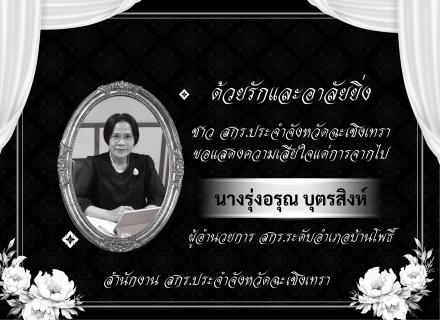 ชาว สกร.ประจำจังหวัดฉะเชิงเทรา ขอแสดงความเสียใจแด่การจากไป นางรุ่งอรุณ บุตรสิงห์ ผู้อำนวยการ สกร.ระดับอำเภอบ้านโพธิ์