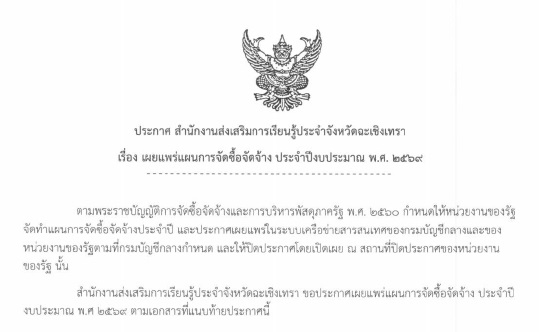 เผยแพร่แผนการจัดซื้อจัดจ้างประจำปีงบประมาณ พ.ศ.2569 (ปรับปุรงอาคารอเนกประสงค์)